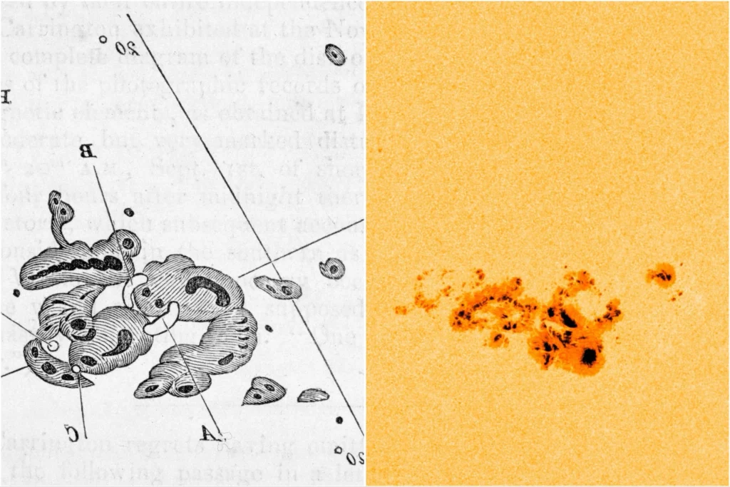 We don’t have modern diagram view of the Carrington Event or the sunspot that created it. All we have is a rough sketch and simulation of what we think it would have looked like. I think you are wise enough to see some comparisons between these two spots and how each polarity is drawing tight and defined margins. We will have to wait to see whether this is going to drop the next Carrington Event or whether it will blessed wait till it is out of view as many others have done over the last 10 years.